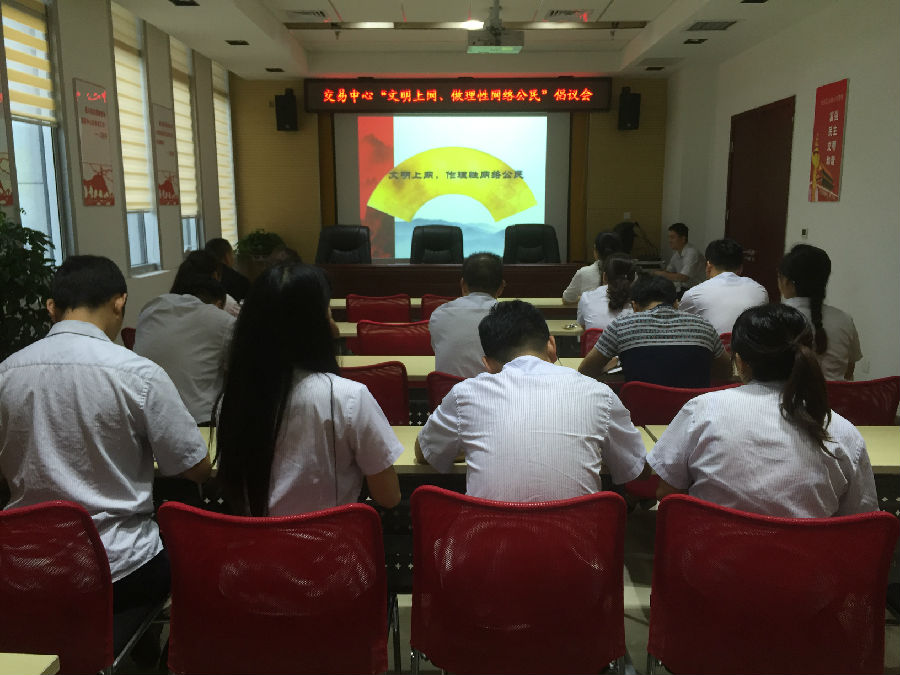 为增强文明上网意识,弘扬主旋律,传递正能量,营造健康和谐的网络舆论环境,7月14日下午,市公共资源交易中心组织召开了“文明上网、做理性网络公民”倡议会,引导全体干部职工理性看待和运用互联网络。