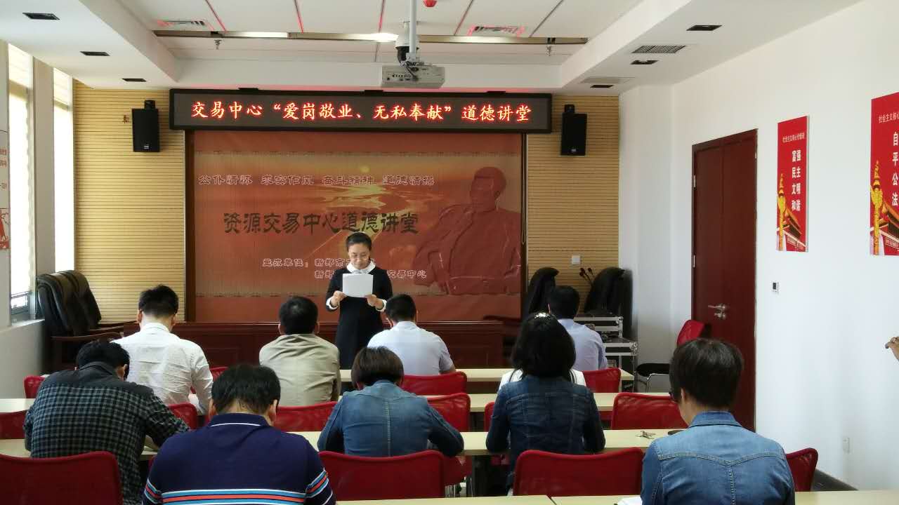 5月8日下午,新郑市公共资源交易中心举办了以“爱岗敬业、无私奉献”为主题的“道德讲堂”活动。中心全体党员干部参加了此次活动。