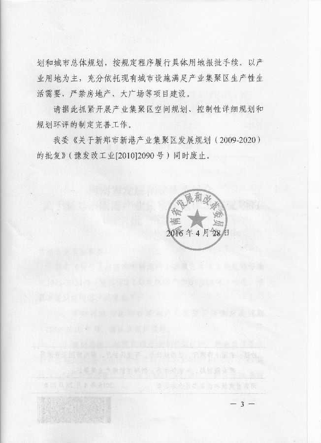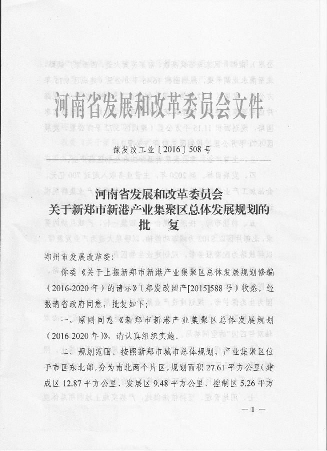 新郑市新港产业集聚区总体发展规划批复