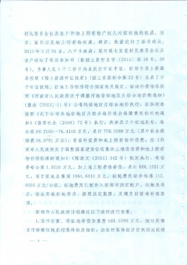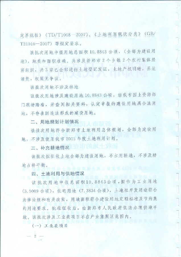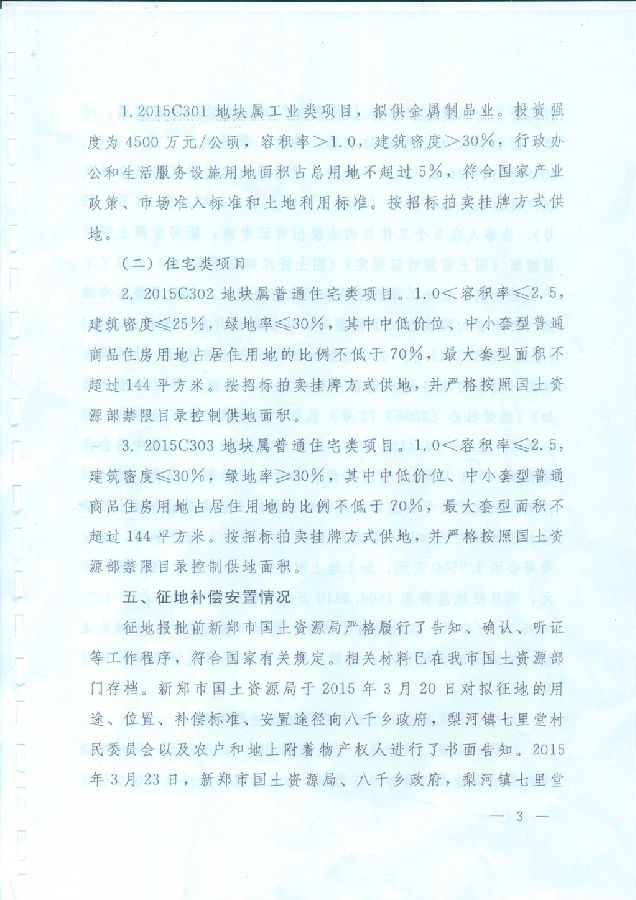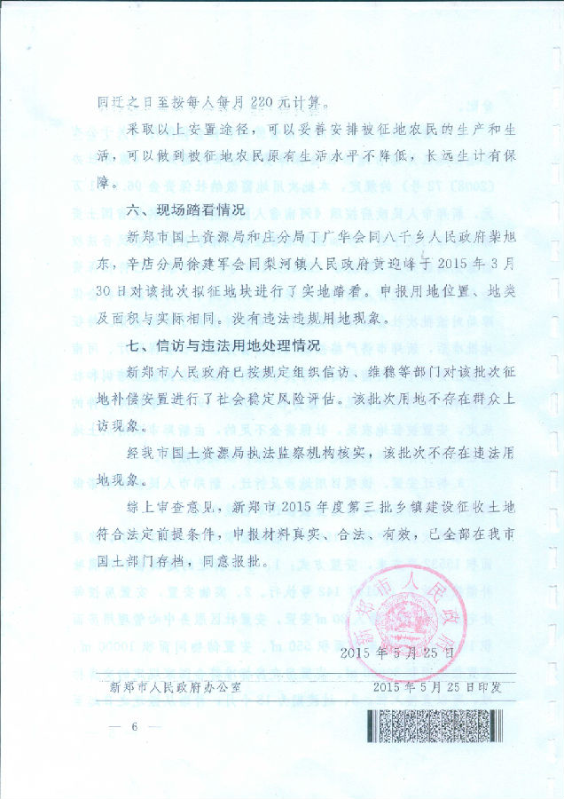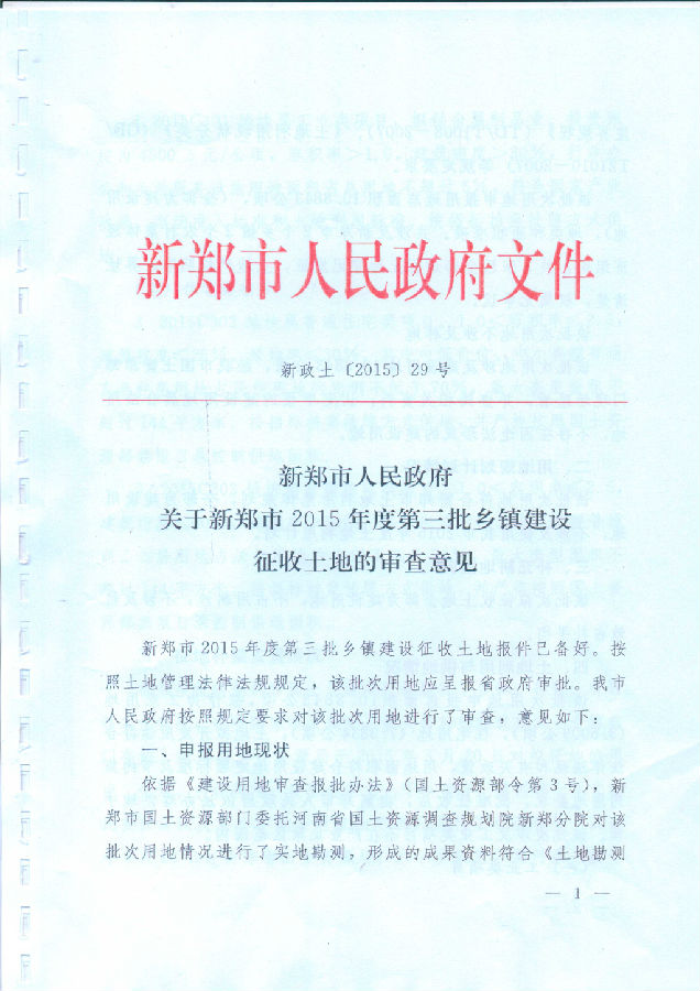 新郑市人民政府关于新郑市2015年度第三批乡镇建设征收土地的审查意见