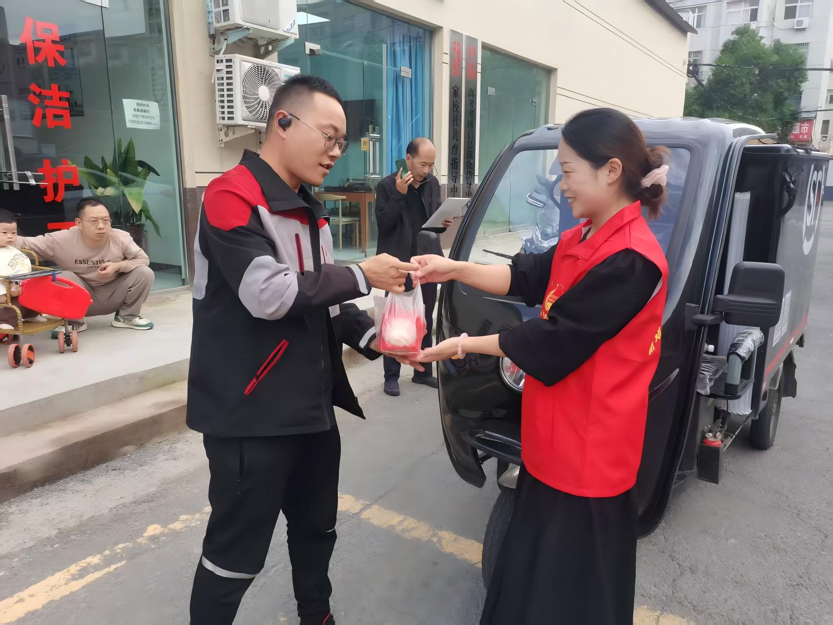 活动当天,轩辕路社区邀请辖区内有烘焙经验的社区志愿者担任“月饼导师”,提前调试烤箱、划分操作区域,为手工制月饼环节做好充分准备。同时社区工会工作人员与志愿者组成“送暖小分队”,带着职工们亲手制作的月饼,为 30余位环卫工人和快递小哥送去节日祝福。