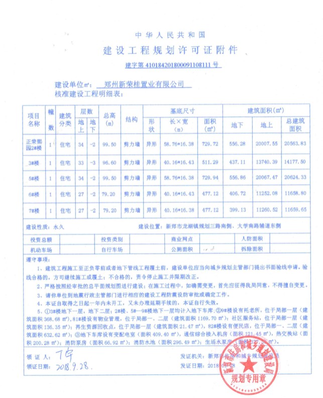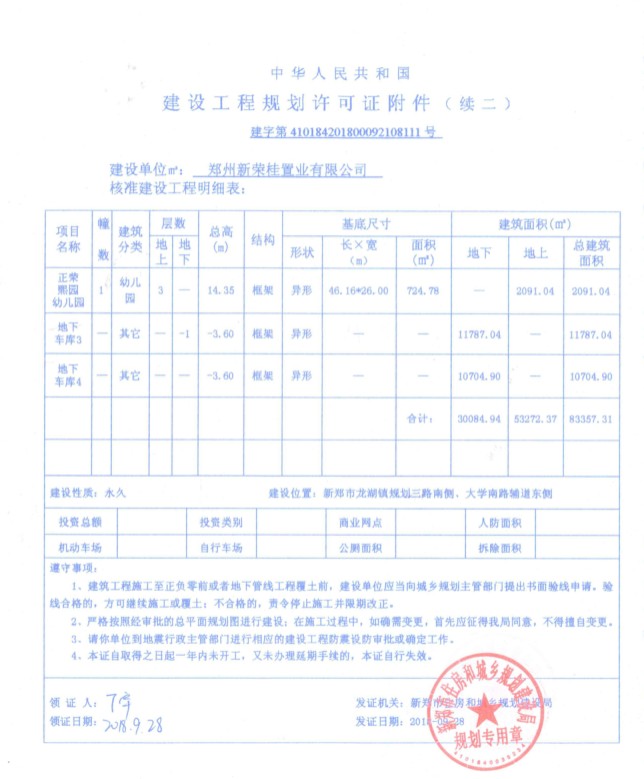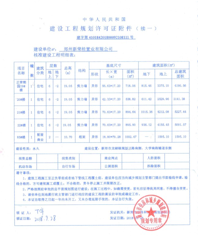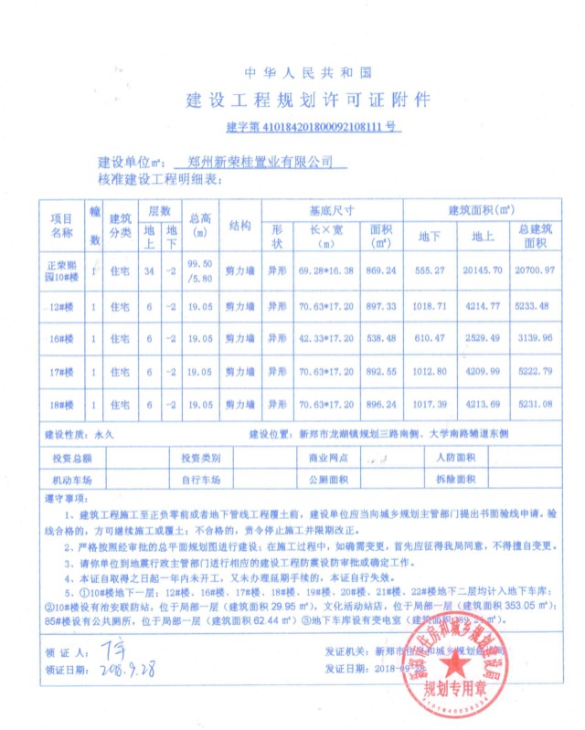 郑州新荣桂置业有限公司建设工程规划许可证批后公示