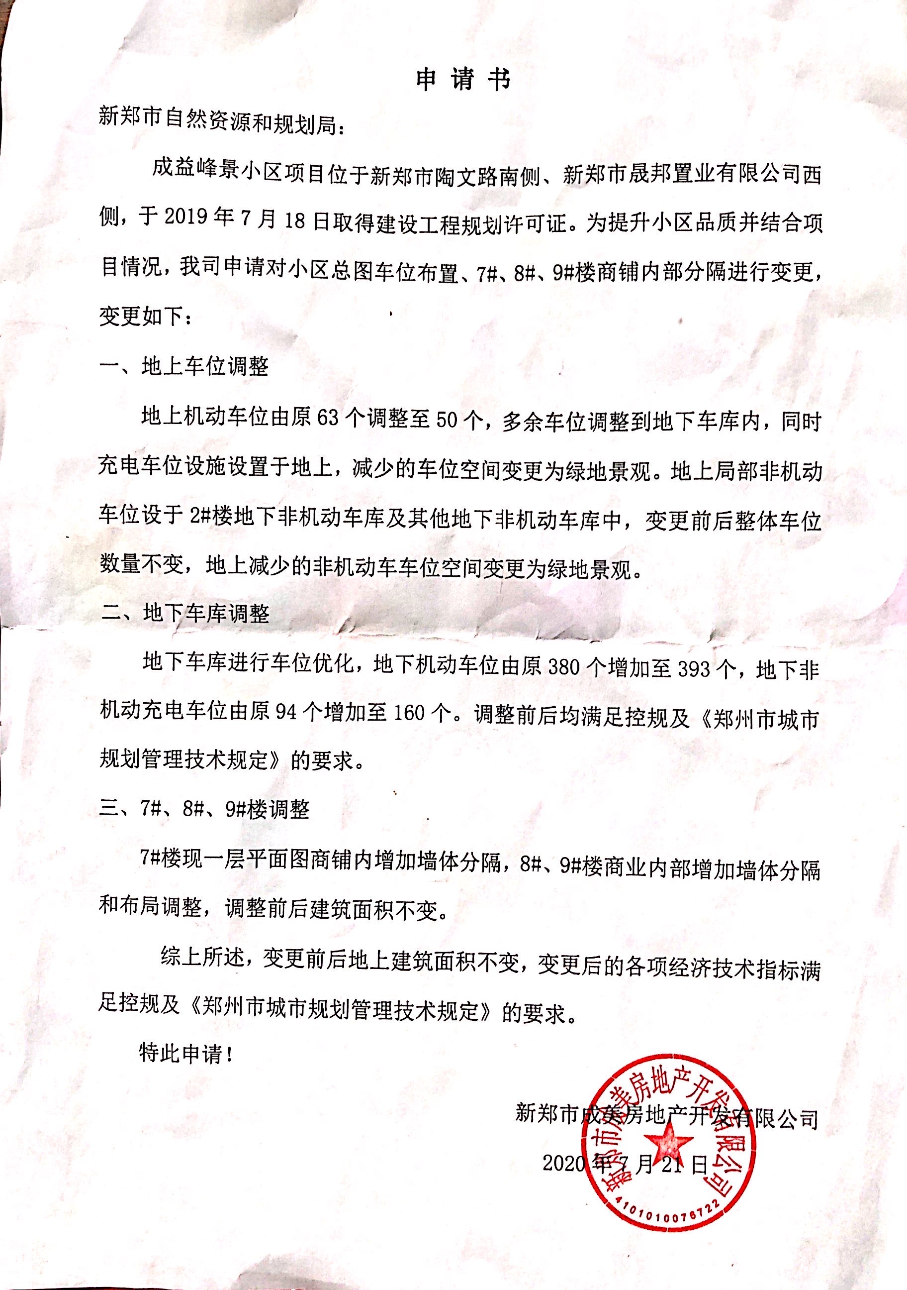 项目名称:成益峰景小区 公示类别:规划方案变更公示 建设单位:新郑市成美房地产开发有限公司 用地位置:新华路街道陶文路南侧、新郑市晟邦置业有限公司西侧 公示期限:10个工作日 公示日期:2020年7月23日至2020年8月5日 附图:变更申请、变更前总平面图、变更后总平面图、变更前单体图、变更后单体图 新郑市自然资源和规划局信访意见电话:0371---62680880