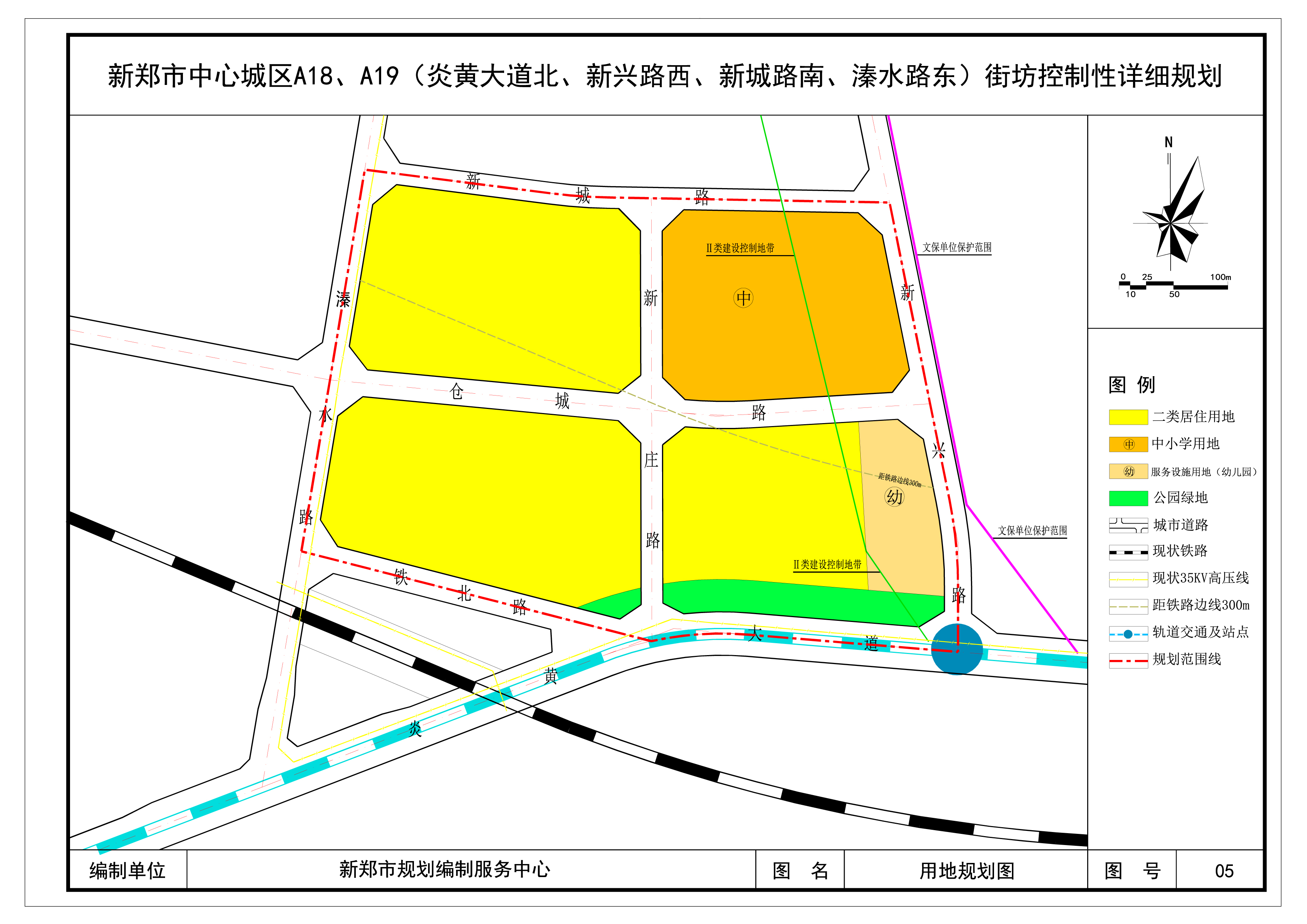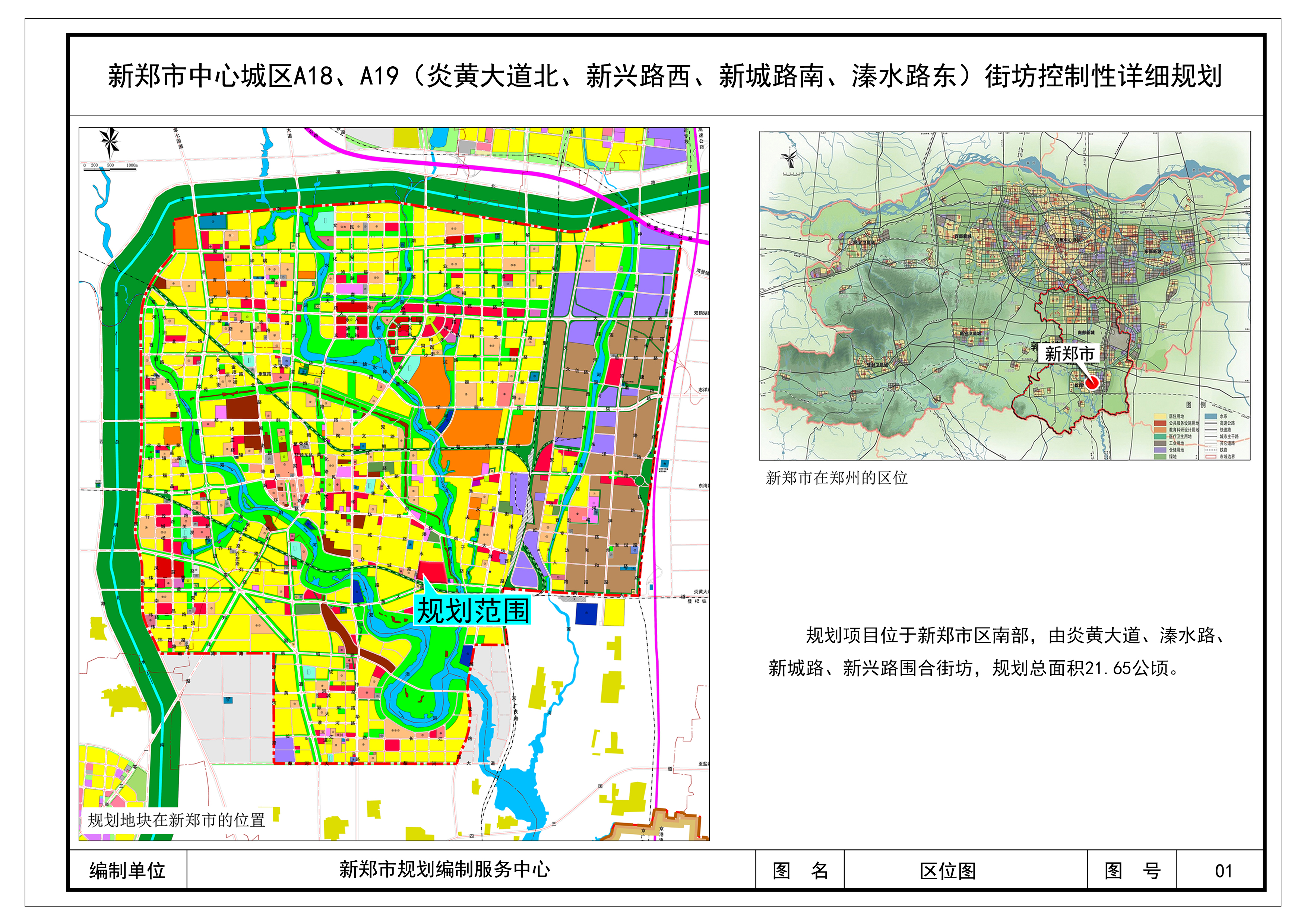 控规名称:新郑市中心城区A18、A19(炎黄大道北、新兴路西、新城路南、溱水路东)街坊控制性详细规划