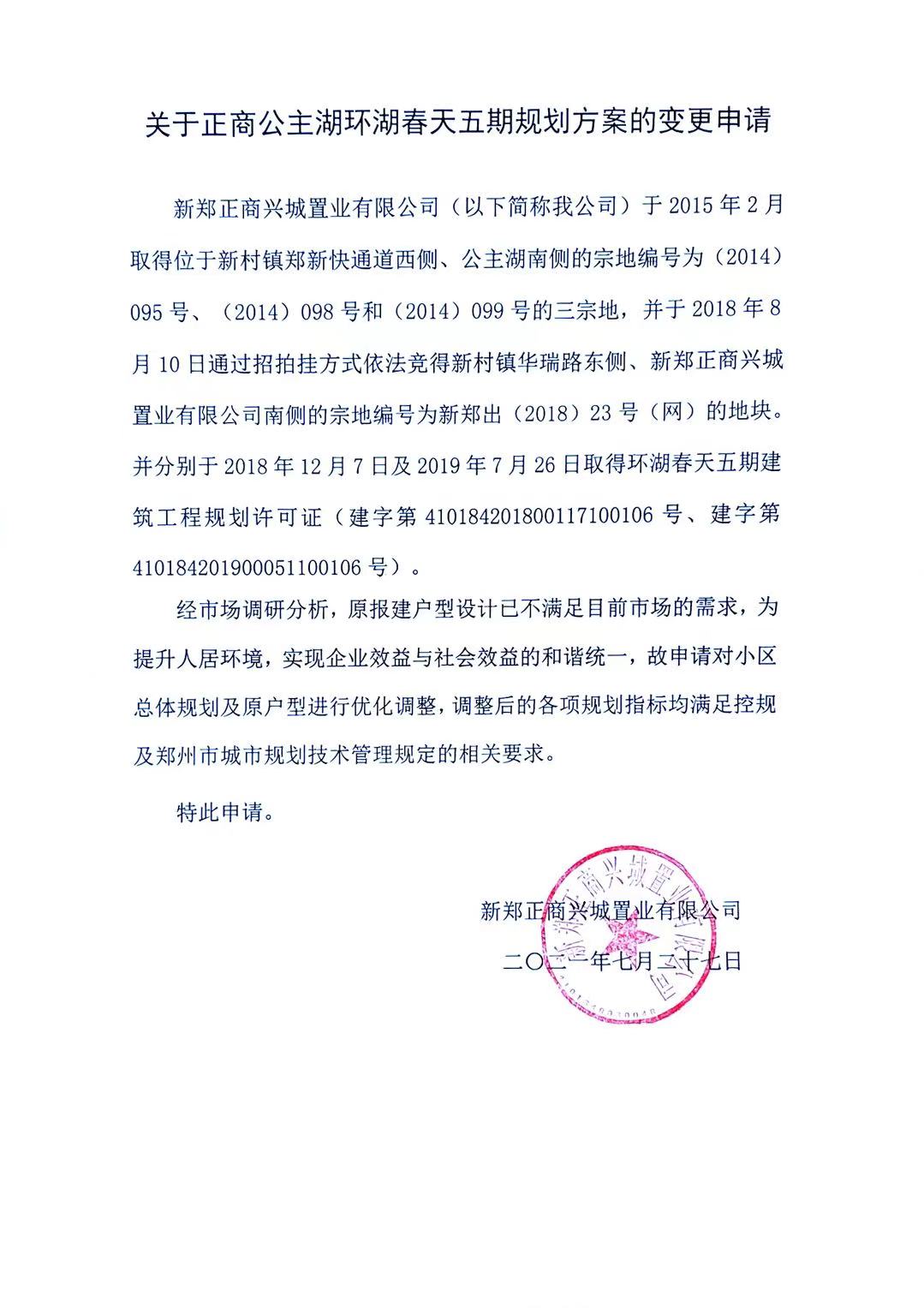 由新郑正商兴城置业有限公司开发建设的正商公主湖环湖春天五期项目,现正在我局办理规划方案变更,根据有关法律、法规和《河南省城市规划公示制度》的要求,现予以公示。